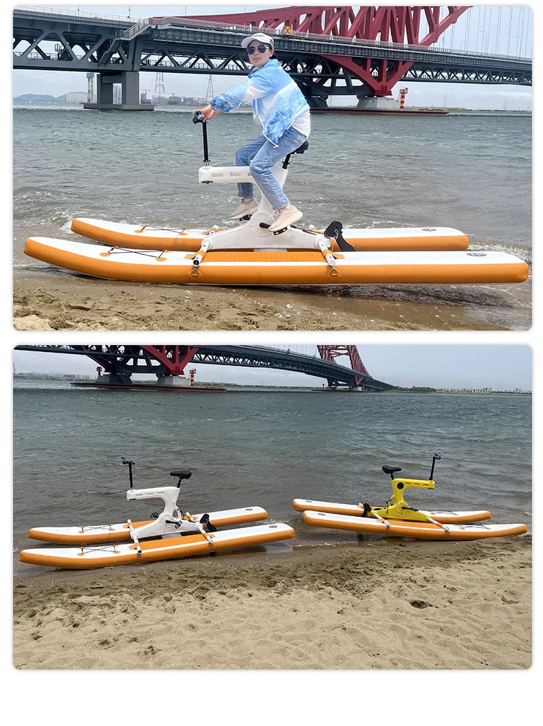 Take your fitness routine to the next level with the Floating Paddle Bike. Designed to be used on the water, this innovative bike allows you to enjoy your favorite scenic views while staying active. Perfect for a day out on your boat or a quiet morning on the water, this bike is a must-have for any fitness enthusiast looking for a fun and challenging workout or a relaxed bike ride on the water!