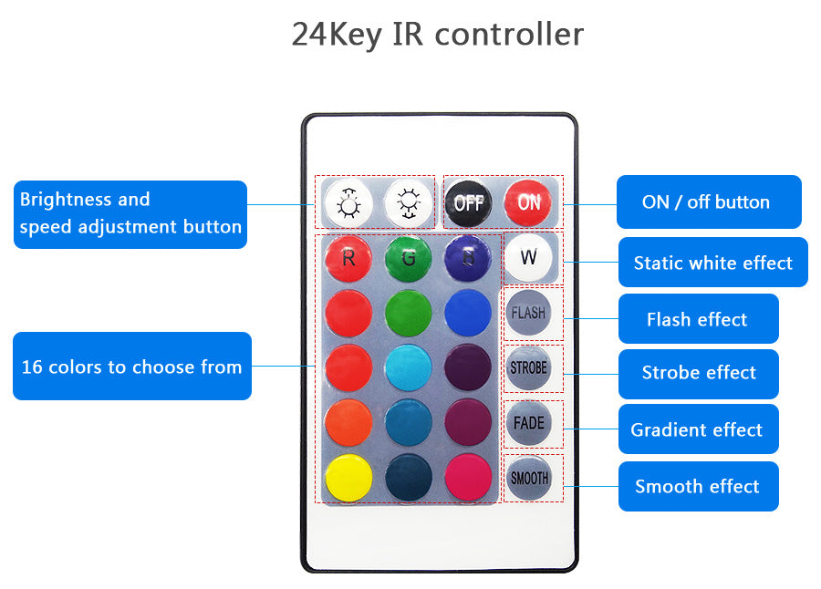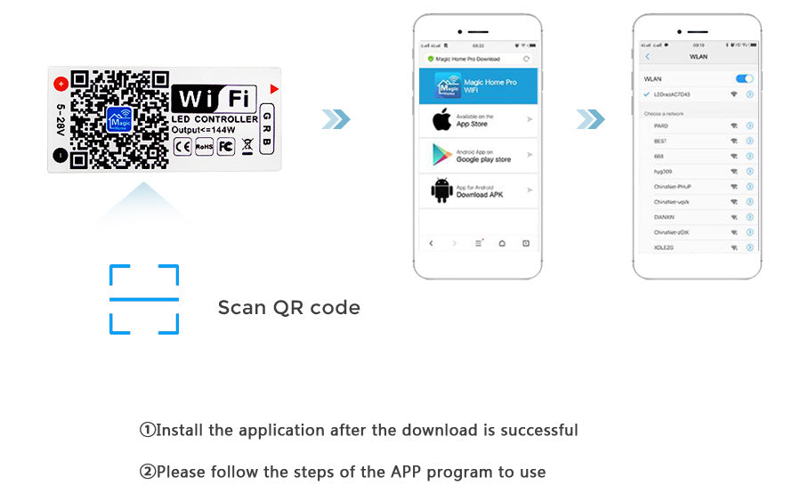 Scan the QR code to download the app to your phone connect via bluetooth.In the app you can adjust the color of the light ,brightness ,mode etc.