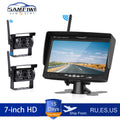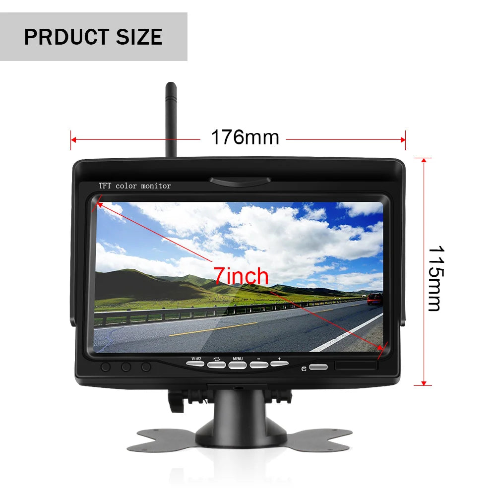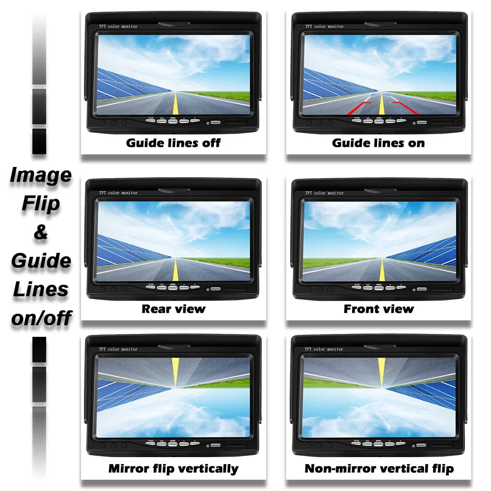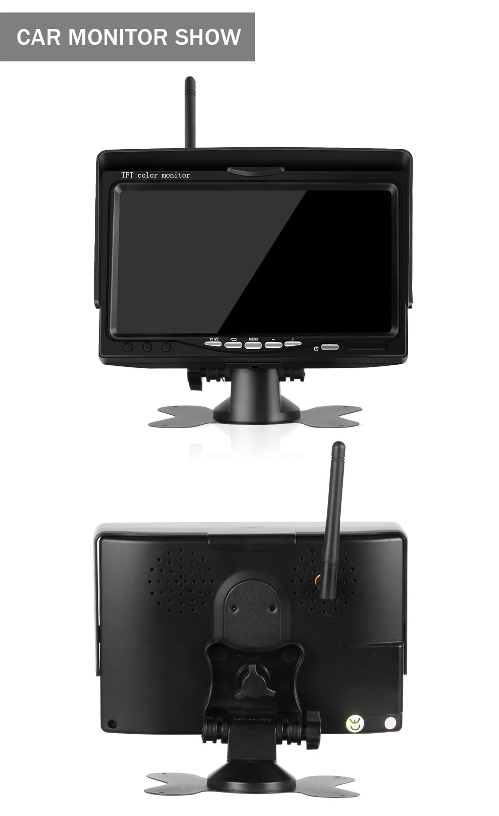 3. There are 2 channels for the cameras:2410(with guide lines for reversing) and 2470(without guide lines for monitoring). Please switch each by pressing the 2nd button on monitor or pressing model Select on remote