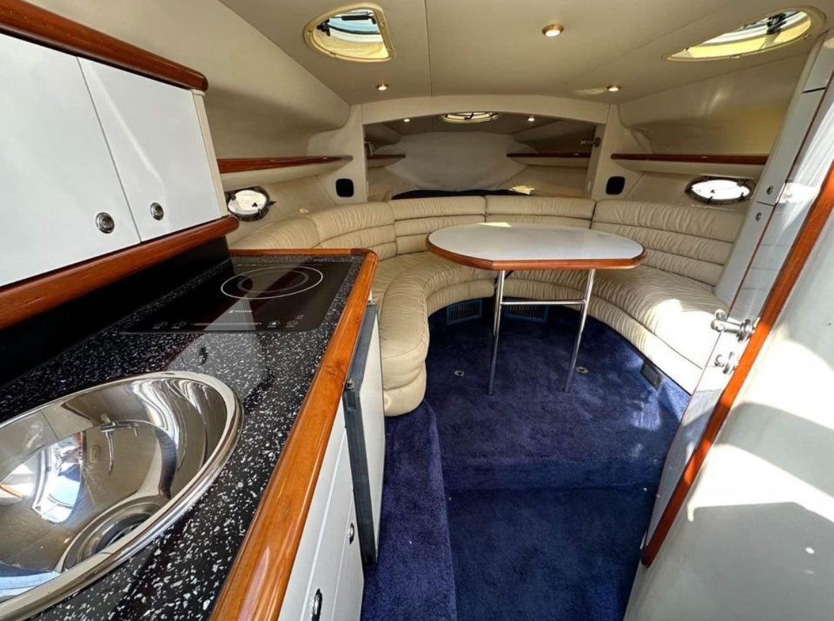 This 1999 Sunseeker Superhawk 34 is a stunning example of one of Sunseeker’s most iconic performance models. Powered by reliable and efficient twin Yanmar 6LP diesel engines, she offers impressive performance with cruising speeds around 28–30 knots and a top speed in the region of 38 knots—delivering both speed and economy.