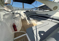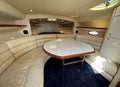 The interior is finished in classic high-gloss wood cabinetry, with neutral upholstery and soft furnishings, maintaining Sunseeker’s signature blend of elegance and practicality. Overhead and reading lights, along with portholes and a deck hatch, provide good natural light and ventilation.
