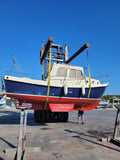 She has been lifted out of the water 202 . Cleaned, antifould, compounded, polished and anodes changed.