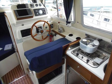This is a ver well presented example of the classic Trusty 23 motor boat, fitted with a reliable Yanmar diesel inboard on shaft drive, crusing around on this boat is a dream. At the stern of the boat is plenty of space to relax and socialise with friends and family with the nice upholstery and table. Into the cockpit and you can immediately feel the benefit of her beam with the galley to starboard just inside the cabin door with a dinette opposite that converts into a generous berth. Ahead of the helm station, a cleverly fitted in a sperate heads and shower compartment. In the forepeak is the generous double cabin.